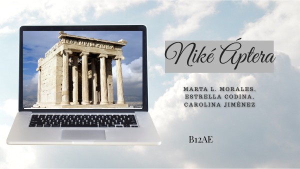 -Nombre: Niké Áptera (Ναός Αθηνάς Νίκης) -Autor: Calícrates -Localización: Acrópolis de Atenas -Cronología: 426-420 a.c ( las obras no empezaron hasta el 421 a.C, comenzada ya la guerra de, Peloponeso ) -Estilo: arquitectura clásica -Época: Edad Antigua