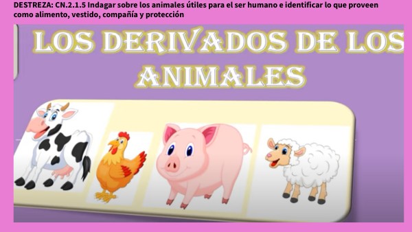 DESTREZA: CN.2.1.5 Indagar sobre los animales útiles para el ser humano e identificar lo que proveen como alimento, vestido, compañía y protección
