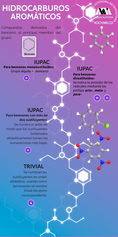 Compuestos derivados del benceno, el principal miembro del grupo.