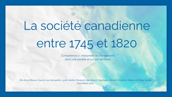La société canadienne entre 1745 et 1820