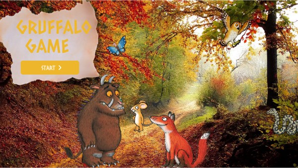 This game is based on the literary book: The Gruffalo. With this interactive game, children can acquire some of the main vocabulary of the book (frog, mouse, fox and snake).
