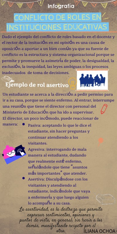 Infografía acerca del conflicto de roles en las instituciones educativas de Iliana Ochoa