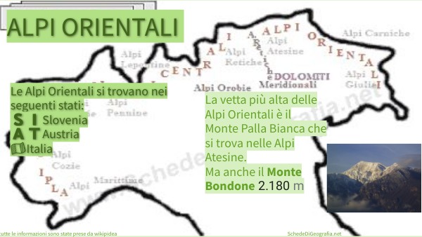 Le Alpi Orientali si trovano nei seguenti stati: 🇸🇮Slovenia 🇦🇹Austria 🇮🇹Italia