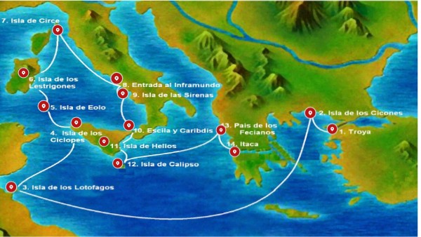 En este mapa interactivo les mostraremos el valiente y peligroso recorrido que hizo Ulises para llegar a su ciudad natal Ítaca, luego de la feroz guerra de Troya