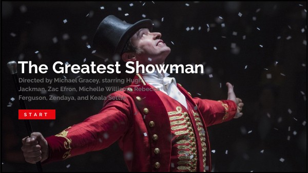 Directed by Michael Gracey, starring Hugh Jackman, Zac Efron, Michelle Williams, Rebecca Ferguson, Zendaya, and Keala Settle.