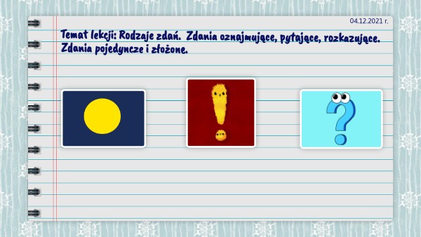 Temat lekcji: Rodzaje zdań. Zdania oznajmujące, pytające, rozkazujące.