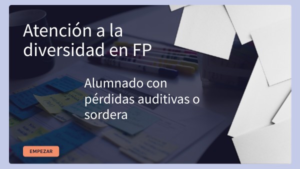 La atención a la diversidad en FP está regulada en el Artículo 73 del Decreto 27/2025 de 21 de mayo. También se recogen aspectos de la evaluación teniendo en cuenta la Orden 893/2022 de 21 de abril. El alumnado con pérdidas auditivas o sordera es muy diverso, y por tanto sus necesidades educativas son heterogéneas.