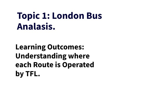 Learning Outcomes: Understanding where each Route is Operated by TFL.