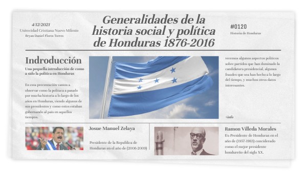 En esta precentación vamos a observar como la politaca a pasado por mucha historia a lo largo de los años en Honduras, viendo algunos de sus presidentes y como estos estaban gobernando al país en aquellos tiempos.