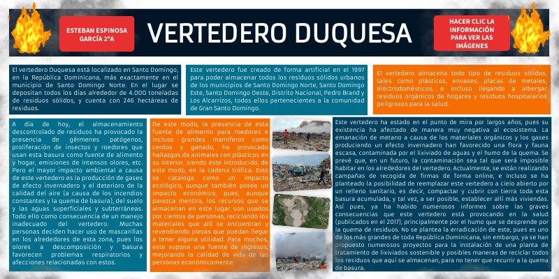 El vertedero Duquesa está localizado en Santo Domingo, en la República Dominicana, más exactamente en el municipio de Santo Domingo Norte. En el lugar se depositan todos los días alrededor de 4.000 toneladas de residuos sólidos, y cuenta con 246 hectáreas de residuos.