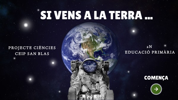 La nostra aventura comença quan vam compartir a classe el llibre titulat "Si vens a la Terra ..." . Ens conta, en 80 pàgines, com és el nostre planeta i el fa de la mà d'un xiquet, Quinn, que escriu una carta a uns imaginaris extraterrestres.