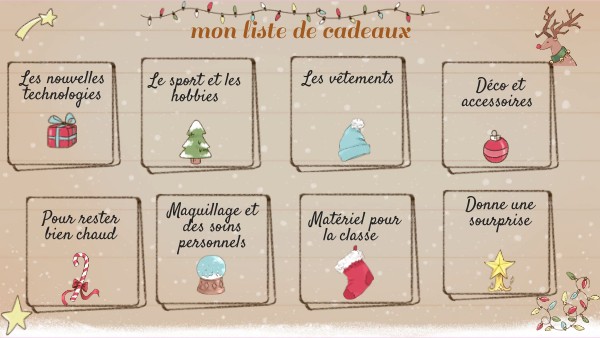 EL ALUMNO O ALUMNA PODRÁ ACCEDER A UN VOCABULARIO AMPLIO RELACIONADO CON LOS REGALOS Y LA NAVIDAD EN FRANCÉS.