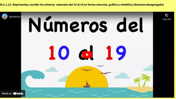 M.2.1.12. Representar, escribir los nímeros naturales del 10 al 19 en forma concreta, gráfica y simbólica (Destreza desagregada)