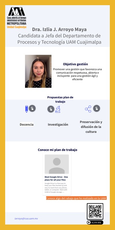 Dra. Izlia J. Arroyo Maya Candidata a Jefa del Departamento de Procesos y Tecnología UAM Cuajimalpa