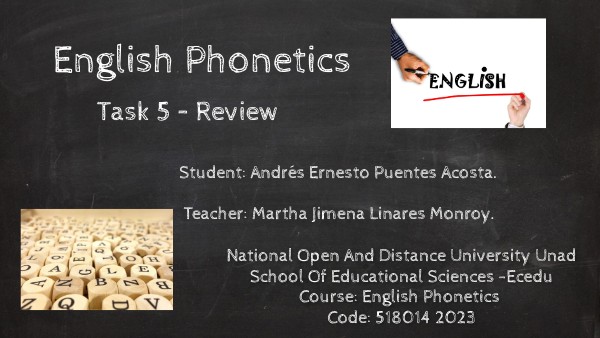 National Open And Distance University Unad School Of Educational Sciences -Ecedu Course: English Phonetics Code: 518014 2023
