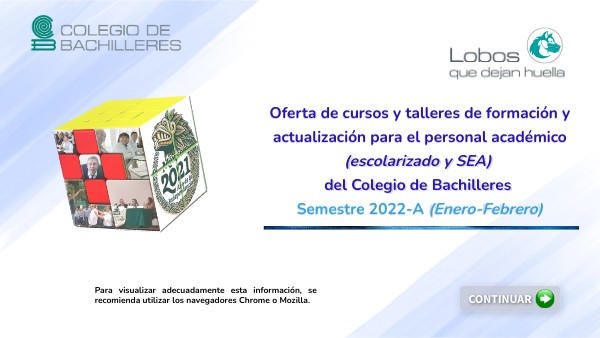 Oferta de cursos y talleres de formación y actualización para el personal académico (escolarizado y SEA) del Colegio de Bachilleres Semestre 2022-A (Enero-Febrero)