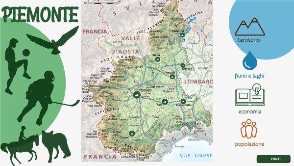 https://online.scuola.zanichelli.it/geograficamente/wp-content/uploads/Zanichelli_Dinucci_Geograficamente_vol1_02_Piemonte.pdf https://www.alessandriaturismopiemonte.it/2019/03/18/i-monti-del-piemonte/ https://ristorantesolferino.com/il-monviso-ed-il-logo-della-paramount/ http://www.tour-italia.com/Piemonte/Piemonte-Economia.html https://www.rottasutorino.it/2015/03/10-ragioni-per-cui-visitare-torino.htmln