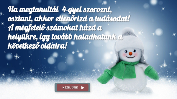 Ha megtanultál 4-gyel szorozni, osztani, akkor ellenőrizd a tudásodat! A megfelelő számokat húzd a helyükre, így tovább haladhatunk a következő oldalra!