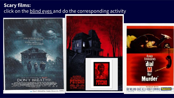 Scary films: click on the blind eyes and do the corresponding activity