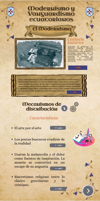 En la esfera literaria, se da la difusión de la nueva lírica modernista y sus revistas literarias. La muerte improvisa, a una tierna edad y por mano propia, de cuatro de los más conspicuos poetas del Modernismo ecuatoriano: Arturo Borja, Humberto Fierro, Ernesto Noboa Caamaño y Medardo Ángel Silva, ocurridas entre 1912 y 1929, resultó influyente a la hora de escribir la historia de la literatura del país.
