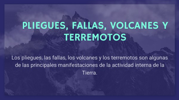 Los pliegues, las fallas, los volcanes y los terremotos son algunas de las principales manifestaciones de la actividad interna de la Tierra.