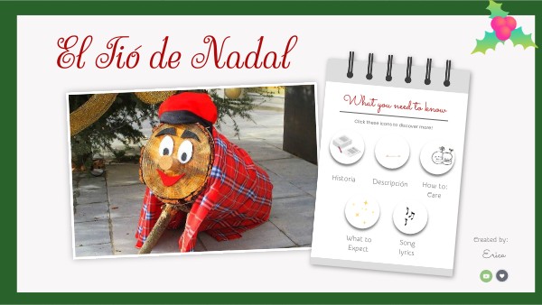 https://www.independent.co.uk/life-style/catalonia-tio-de-nadal-christmas-log-tradition-presents-what-is-it-a8091921.htmlhttps://en.wikipedia.org/wiki/Ti%C3%B3_de_Nadal https://fpangoingpublic.blogspot.com/2014/12/el-tio-de-nadal-is-comin-to-town.html https://youtu.be/cJ0mGazsAkU