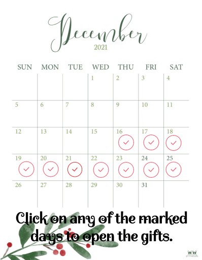 Click on any of the marked days to open the gifts.