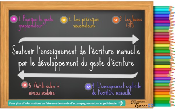 Entre 6 et 33% des élèves du primaire éprouvent des difficultés en écriture, notamment en ce qui a trait à l’automatisation du geste graphomoteur (Druiser, 2020)