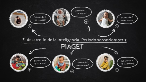 En esta infografía se describen brevemente los diferentes subestadios del período sensoriomotriz de la teoría del desarrollo cognitivo de Piaget.
