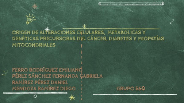 Origen de alteraciones celulares, metabolicas y genéticas precursoras del cáncer, diabetes y miopatías mitocondriales Ferro Rodríguez Emiliano Pérez Sánchez Fernanda Gabriela Ramírez Pérez Daniel Mendoza Ramírez Diego GRUPO 560