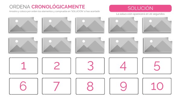 Arrastra y coloca por orden los elementos y comprueba en 'SOLUCIÓN' si has acertado