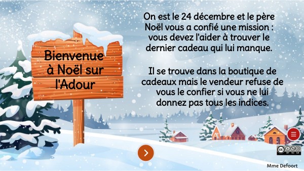 On est le 24 décembre et le père Noël vous a confié une mission : vous devez l'aider à trouver le dernier cadeau qui lui manque.