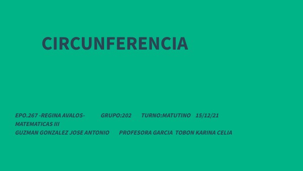 El trabajo que se nos encomendo representa y explica el tema sobre "LA CIRCUNFERENCIA". Lo cual lo veremos en las siguientes diapositivas.