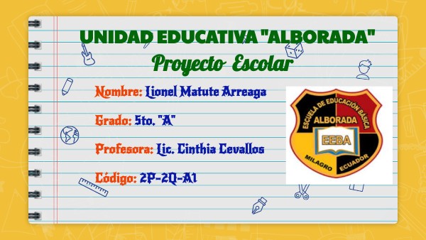 Nombre: Lionel Matute Arreaga Grado: 5to. "A" Profesora: Lic. Cinthia Cevallos Código: 2P-2Q-A1