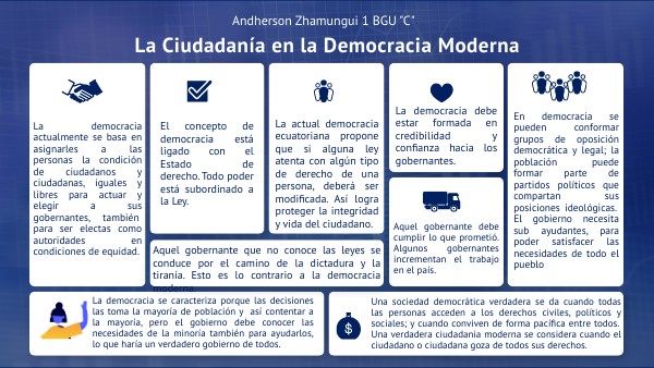 La democracia actualmente se basa en asignarles a las personas la condición de ciudadanos y ciudadanas, iguales y libres para actuar y elegir a sus gobernantes, también para ser electas como autoridades en condiciones de equidad.