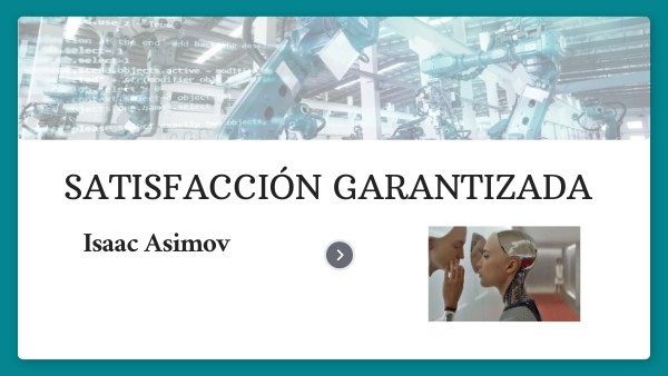 Título original: Satisfaction Guaranteed Autor: Isaac Asimov. Revista o libro: The Magazine of Fantasy and Science Fiction Editorial: Ziff-Davis Publishing Company Fecha: Abril de 1951