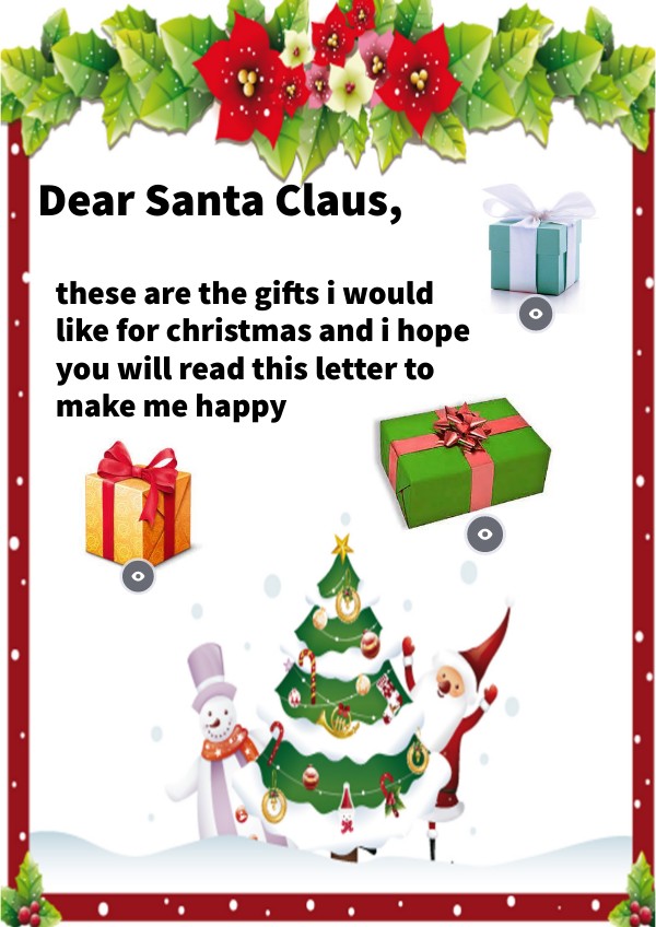 these are the gifts i would like for christmas and i hope you will read this letter to make me happy