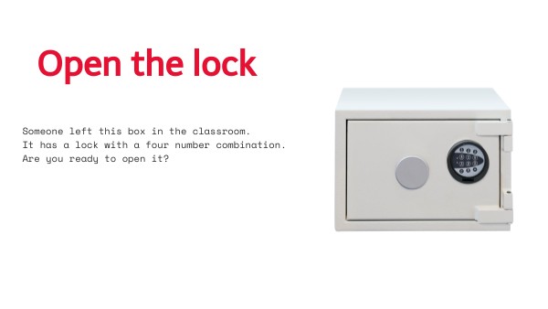Someone left this box in the classroom. It has a lock with a four number combination. Are you ready to open it?