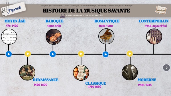 Champ de questionnement : Le son, la musique, l'espace et le temps / Thématique : la musique, un art du temps