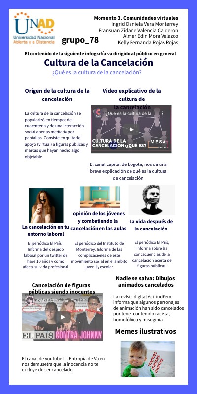 INFOGRAFÍA DESCRIPTIVA ACERCA DE LA CULTURA DE LA CANCELACION, ORIGEN, CONCEPTO Y CONSECUENCIAS SOCIALES EN EL AMBITO LABORA, SOCIAL Y EDUCATIVO