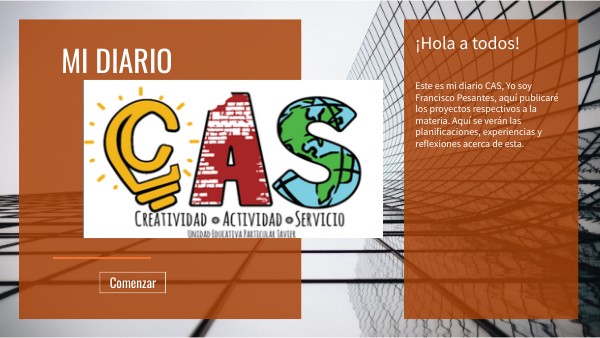 Este es mi diario CAS, Yo soy Francisco Pesantes, aquí publicaré los proyectos respectivos a la materia. Aquí se verán las planificaciones, experiencias y reflexiones acerca de esta.