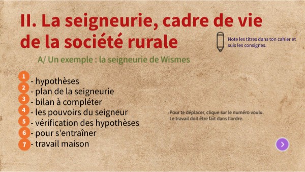 - hypothèses - plan de la seigneurie - bilan à compléter - les pouvoirs du seigneur - vérification des hypothèses - pour s'entraîner - travail maison
