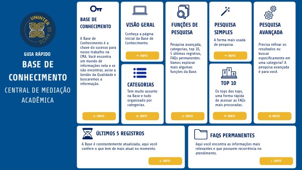 Pesquisa avançada, categorias, top 10, 5 últimos registros, FAQs permanentes. Vamos explorar mais algumas funções da Base.