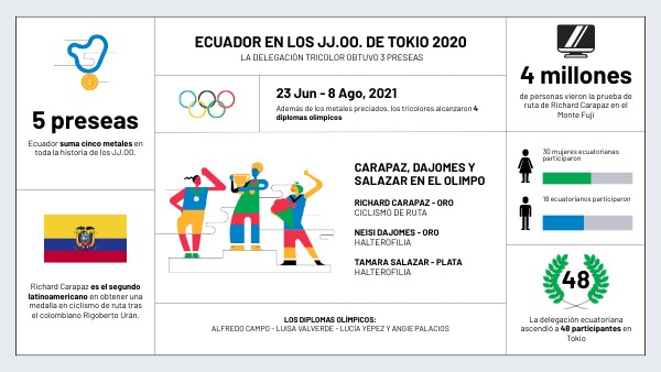 RICHARD CARAPAZ - ORO CICLISMO DE RUTA NEISI DAJOMES - ORO HALTEROFILIA TAMARA SALAZAR - PLATA HALTEROFILIA