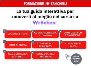 - Sei hai già fatto un corso Zanichelli o hai già un account WeSchool entra con le tue credenziali e troverai il corso nella sezione I miei gruppi