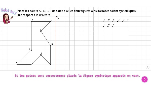 Si les points sont correctement placés la figure symétrique apparaît en vert.