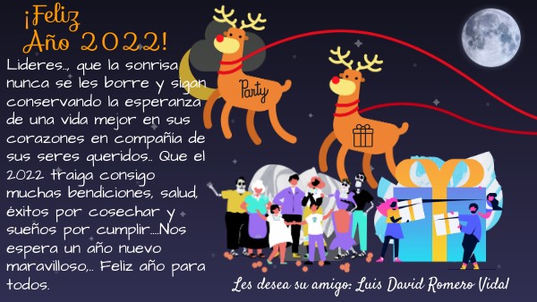 Lideres.., que la sonrisa nunca se les borre y sigan conservando la esperanza de una vida mejor en sus corazones en compañía de sus seres queridos.. Que el 2022 traiga consigo muchas bendiciones, salud, éxitos por cosechar y sueños por cumplir....Nos espera un año nuevo maravilloso,.. Feliz año para todos.