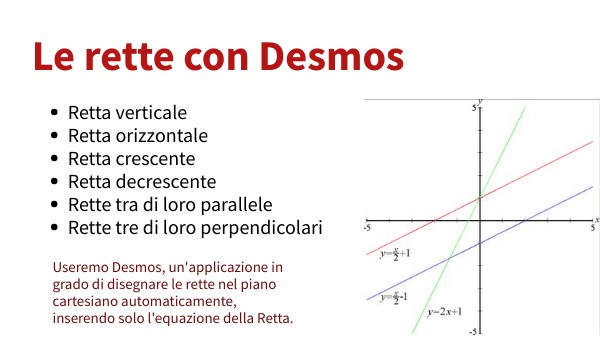 Useremo Desmos, un'applicazione in grado di disegnare le rette nel piano cartesiano automaticamente, inserendo solo l'equazione della Retta.