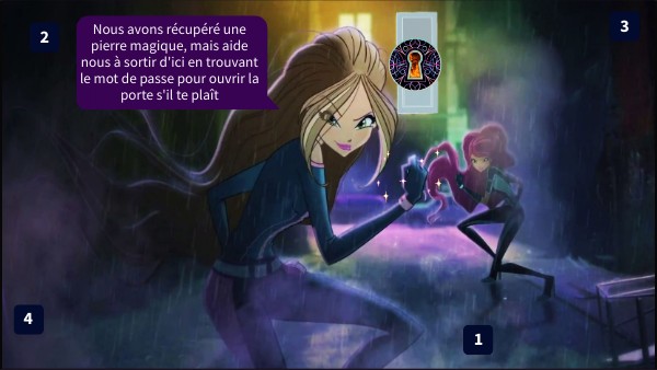 Nous avons récupéré une pierre magique, mais aide nous à sortir d'ici en trouvant le mot de passe pour ouvrir la porte s'il te plaît