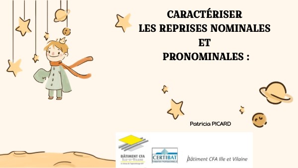 CARACTÉRISER LES REPRISES NOMINALES ET PRONOMINALES :